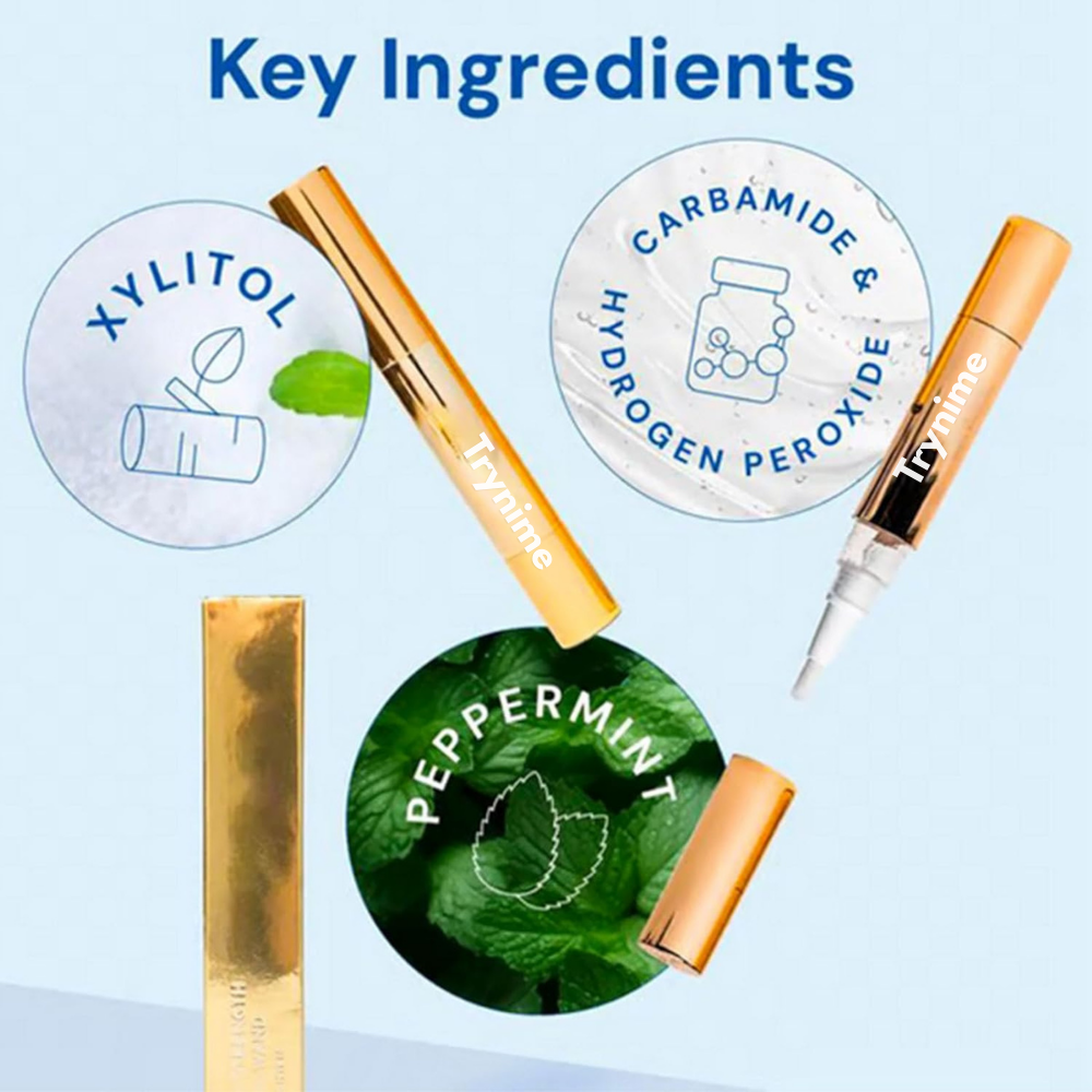 Elevate your smile with the Trynime Teeth Whitening Gold Serum Pen, a luxury whitening treatment designed to visibly brighten teeth while staying gentle on enamel. This advanced gold-infused cold serum targets deep discoloration for a noticeably whiter, more radiant smile—without sensitivity.